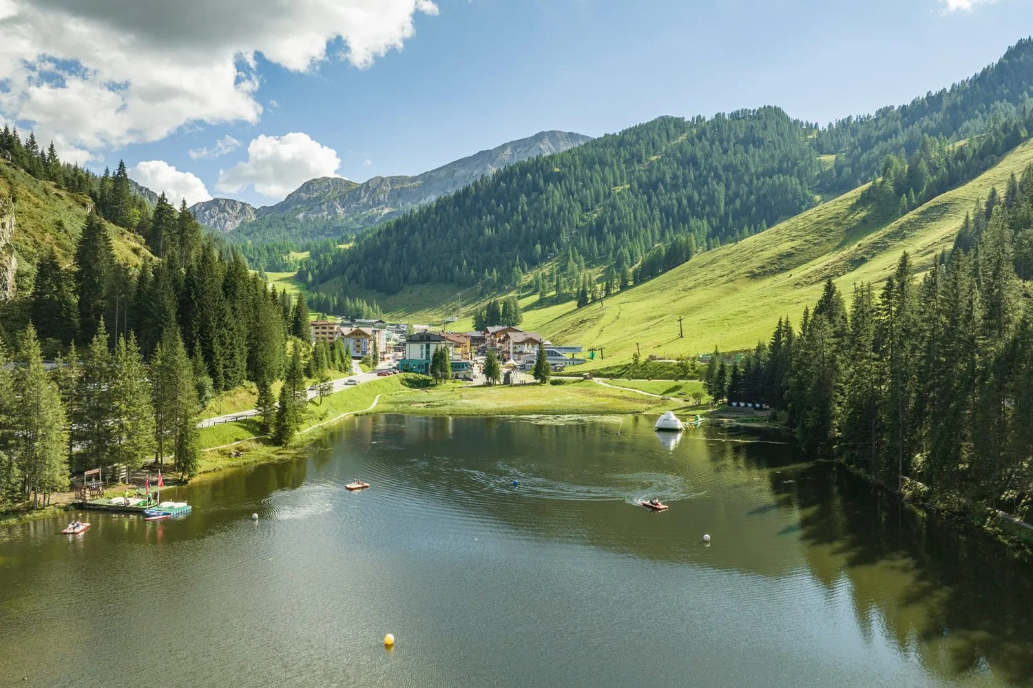 - Swimming & Water Sports: Natural lake Zauchensee - perfect for a refreshment on hot summer days and for water sports such as surfing and sailing. Great outdoor program at the Family Vacation in the Club Village Magic Mountains.